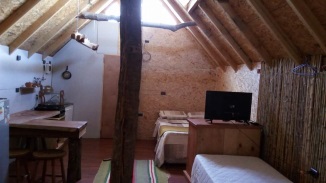 Alojamiento en 2 cabañas, 1 con infraestructura tipo Ruka, capacidad máxima de alojamiento: 10 personas.